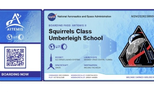 The astronauts on Artemis II, which is scheduled to launch this evening, will carry a memory stick containing many names—including “Squirrel’s Class from Umberleigh School”—so we can proudly say that we’ve been to space!